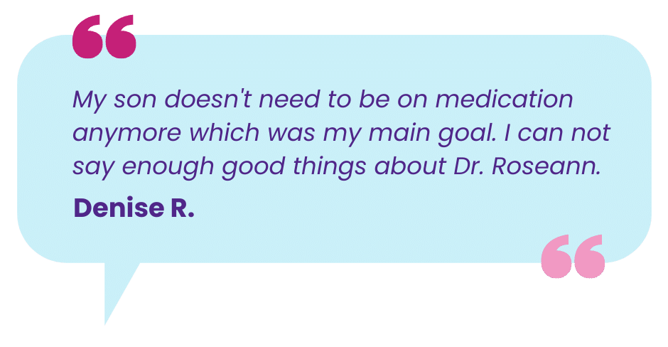 As a mom of two special needs boys, she understands what it’s like to see her own children struggle. Dr. Roseann takes great joy in empowering parents and helping families find calm, experience lasting relief, and lead happy lives.